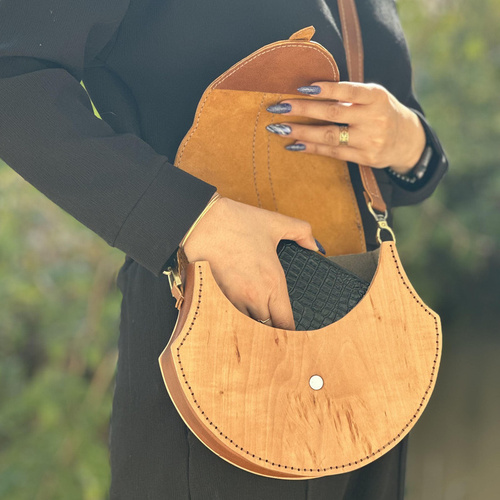 چوب به عنوان یکی از عناصر اصلی طبیعت، نقش مهمی در زندگی انسان بازی می کند. دست سازه های آسو با الهام از طبیعت و ساخته شده از منابع طبیعی مثل چوب و چرم، گرما و اصالت طبیعت را به شما هدیه می دهند. کیف زنانه چوب و چرم اسو ساخته شده از چوب و چرم طبیعی و دارای ابعاد 24x20x7 سانتیمتر می باشد. پرداخت قسمت چوبی کیف با دقت هرچه تمام تر انجام شده و پوشش آن از روغن گیاهی ضدآب است. قسمت چرم کیف نیز کاملا دست دوز می باشد.